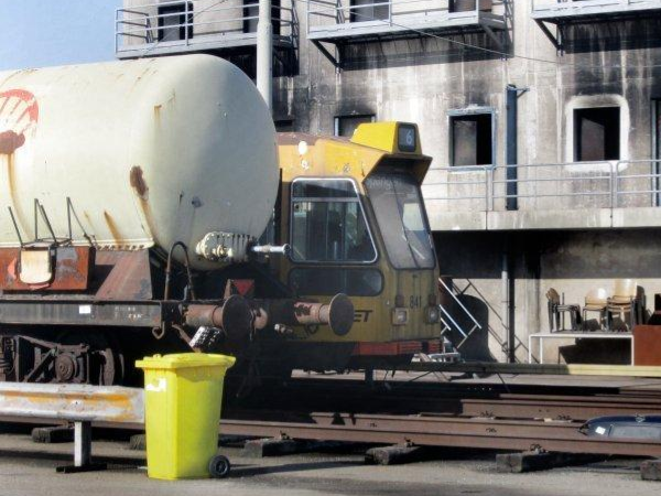 ZGT 841 is na haar carrière bij de RET overgenomen door trainingscentrum Risk op de Maasvlakte. Op 25 februari 2012 nam ik hier een kijkje. De kop is net te zien van achter een tankwagon, op de koersrol staat het historische lijnnummer 6 met bijpassend eindpunt Spangen. De achterkant van de tram stak een heel stuk verder uit aan de andere kant van de tankwagon, waar op de koersrol de tevens historische aanduiding "9 Pelgrimsstraat" te zien was. Vandaag de dag heeft dit gebied een nieuwe bestemming gekregen en is het trainingscentrum inclusief de tram verdwenen.