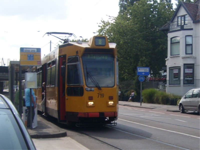 Tussen 1981 en 1988 zijn er 100 ZGT-stellen geleverd door trambouwer Düwag, waarvan vijftig in de 700-serie en vijftig in de 800-serie. De serie 700 is tussen '82 en '85 op de rails verschenen in de toenmalige geel-bruine kleurstelling (wel feller dan het gebruikelijke okergeel), die sommige stellen tot het eind hebben gedragen. Zo ook de 719, die op 23 augustus 2009 als lijn 8 naar de Kleiweg een stop maakt bij station Noord.
