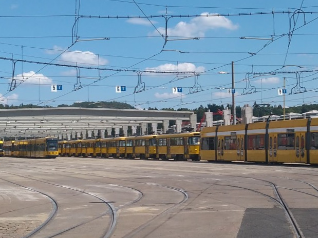 Het trammuseum van Dresden bleek gesloten te zijn, maar de pijn werd verzacht door dit tafereel. Achter het museum ligt een root depot waar een hele rij Tatra T4-trams stond, die sinds kort buiten dienst zien.