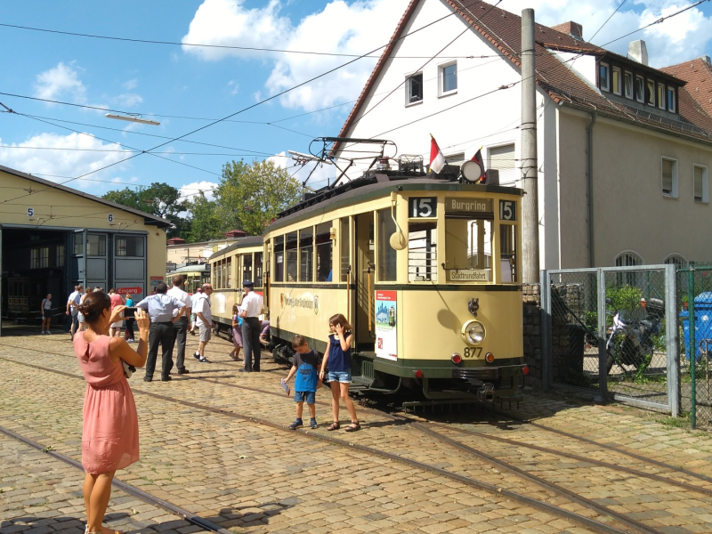 Bij vertrek kwam precies de historische tramlijn aan bij het depot, dus deze kon ik ook nog even op de foto zetten. Ik was overigens niet de enige met dat idee, te zien aan de poserende kinderen.